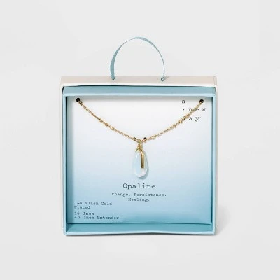 Style yourself for the day with a positive attitude wearing this Silver Plated Opalite Pendant Necklace from A New Dayโข. This pendant necklace is adorned with an opalite pendant that drops down from the gold-tone chain for a standout look that’s perfect for all dressier occasion. It comes with an extender chain to help you adjust the length, and easily closes with the spring ring clasp closure for a secure fit. You can wear this gold-plated pendant necklace as a solo piece or pair with other accessories for versatile styling.