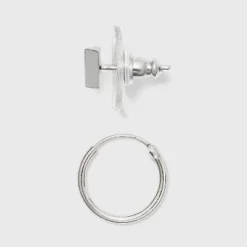 Bring on the bling with the Sterling Silver Endless Hoop, Faux Sapphire and Cubic Zirconia Earring Set from A New Dayโข. This set includes five pairs of minimalist stud earrings in different shapes and sizes, with studs set on post hardware with bullet-clutch backs for comfortable, secure wear, and sterling silver endless hoop earrings with tidy integrated closures. Included are a pair of silver bar earrings, CZ studs in silver prong settings, shield studs with CZ accents, bezel-set CZ earrings, prong-set faux sapphire earrings and a set of silver endless hoops for versatile options you’ll love. Each pair can be worn separately for a minimalist vibe that’s easy to dress up or down, and their coordinating looks mean they’re also easy to style together when you want an extra touch of shimmer.