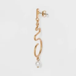 Elevate your daytime or evening outfits with these Open Squiggle Earrings from A New Day™. These light gold fashion earrings offer easy styling with any outfit. Featuring an open squiggle design with a suspended pearl drop accent, they bring a unique and elegant touch to your look. These lightweight earrings are made from nickel-free metal to suit most skin types, and they feature post back closures for a secure fit. Wear them with a range of dresses or pared-back ensembles for ultra-fashionable flair.