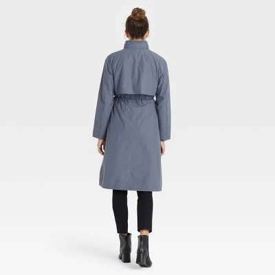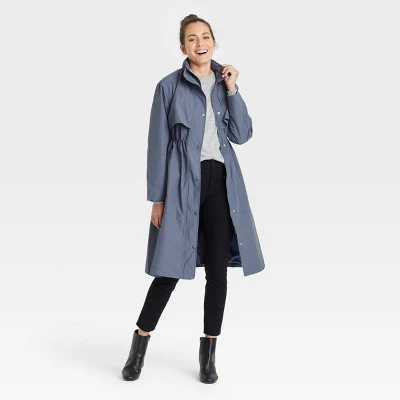 Refresh you outerwear collection with the Trench Coat from A New Day™. Made of a lightweight fabric with full lining, this long-sleeve jacket boasts water-resistant construction that will have you singing and splashing in the rain while keeping comfy and dry. The solid-hued trench coat is tailored in a regular-fit silhouette with a below-knee length for extra coverage. It has a high neckline with a zippered front under a snap-button placket for extra comfort, along with an attached hood hidden inside the zippered collar that can be pulled out to cover your head during drizzly days and blustery winds. The cinched waistline adds definition to your look, while the roomy patch pockets allow you to keep on-the-go essentials close by. Wear over everything from dresses to jeans-and-T-shirt or -sweater combos for versatile wear.