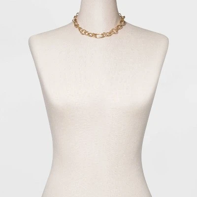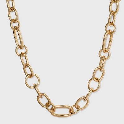 This versatile Multi Link Chain Necklace from A New Dayโข is sure to become a staple piece in your jewelry collection. This necklace’s princess length flatters your collarbone. The lobster claw clasp offers a secure fit as well as easy on-and-off wear, while the nickel-free construction makes it suitable for most skin types. A timeless classic, it’s easy to mix and match this gold-finished chain with other accessories and clothing to create a range of casual or formal looks. Its wide loops can also be adorned with charms for a stylish touch that’s uniquely you.