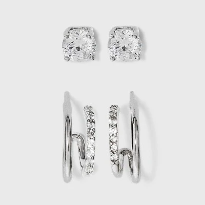 The Sterling Silver Cubic Zirconia Double Hoop Earring Set from A New Dayโข includes two pairs of sterling silver earrings in classic styles that have plenty of shine to go around thanks to their glittering gems. A pair of round-cut CZs are set in simple prong settings that enhance their shimmer by letting light pass through the facets, while the pair of double hoop earrings looks like two earrings in one easy-to-wear pair. Wear each separately for a minimalist vibe that’s perfect for everyday styles, or sport them together when you want to amp up the glam.