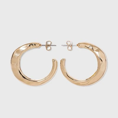 Add modern designs to your jewelry collection with these Flat Hammered Hoop Earrings from A New Day™. These round hoop earrings make a versatile accessory for any occasion. They feature a flat, subtly hammered design in a gold tone finish for a mix of edgy style and shine. These lightweight hoop earrings come with post-back closures for secure, easy and comfortable all-day wear, and they’re made from nickel-free metal to suit most skin types. Wear them with black dresses and heels or with everyday casual looks for effortless chic style.