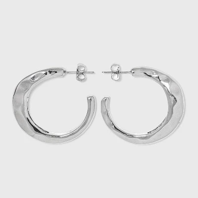 - Flat hammered hoop earrings make a fashionable jewelry accessory