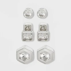As precious as your loved ones, this Three-Piece Sterling Silver Cubic Zirconia Multi Shape Stud Earring Set from A New Day™ makes a perfect gift for all occasions. Each pair in this sterling silver earring set has a varying shape and design to help you create a variety of looks each day. Studded with stones, this cubic zirconia earring set adds glamorous appeal to your everyday or occasional outfits. Made with nickel-free metal, this three-pair earring set suits all skin types.