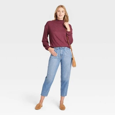 Elevate your transitional season wear with the Long-Sleeve High-Neck Smocked T-Shirt from A New Day™. Fashioned in solid hue with a heather finish, this women’s long-sleeve tee is knit from a soft and lightweight fabric to give you a style staple that you can wear through the seasons. Tailored in relaxed fit, the pullover T-shirt features a high neck and a below-waist hemline accented with smocked detailing for a sweet stay-put design, while the bishop sleeves lend some statement style to your outfit. Layer it over a range of bottoms to let the smocked texture to do the talking.