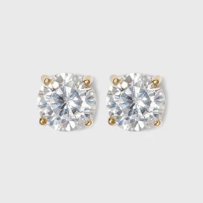 Accessorize your dress with these Cubic Zirconia Round Stud Earrings with 14k Gold Plating over Sterling Silver from A New Dayβ’ Gold. This pair of fine jewelry earrings, showcasing a round-cut clear cubic zirconia stone held in a secure four-prong setting, is both simple and elegant. Enhanced with a touch of gold, these beautiful sterling silver earrings add shine to your everyday looks. Pair these earrings with your favorite outfits to a add a touch of dazzle to any of your looks.