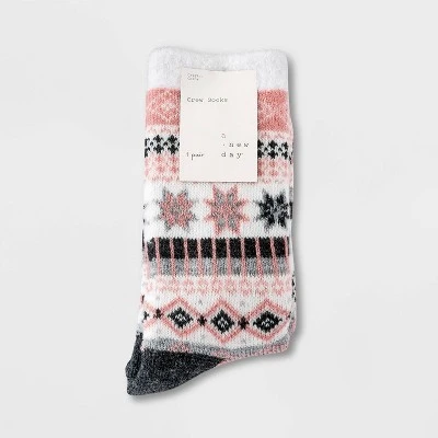 Keep your feet warm and comfortable with the Women’s Fair Isle Double Lined Cozy Crew Socks – A New Day™ Pink/Heather Gray 4-10