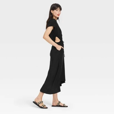 Elevate your everyday closet with this Short-Sleeve Cut-Out Dress from A New Day™. The casual-fit dress features a crew neckline and side and back cut-outs to take your everyday style up a notch. Plus, the handkerchief hem lends a flattering look that’ll move beautifully with your every step. Made from breathable fabric for comfortable wear, this short-sleeve dress also sports side cut-out detailing with a back-tie closure, making it perfect for weekend brunches, casual outings and backyard barbecues. Pair it with sneakers for a lovely weekend look, or with heeled ankle boots for more formal gatherings.
