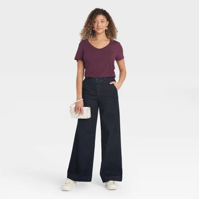Add some variety to your everyday wear with the Short-Sleeve V-Neck T-Shirt from A New Day™. This women’s short-sleeve T-shirt is tailored in a relaxed fit, and it has a V-neckline for feminine flair. The pullover tee is made from soft and lightweight fabric for all-day comfortable wear. In a solid hue, this short-sleeve T-shirt makes a versatile addition to your closet, and it pairs effortlessly with any style of bottoms for a range of dressy and casual outfits. Tuck it into paperbag wide-leg pants for a feminine look or wear it untucked over leggings and sneakers for casual hangouts.