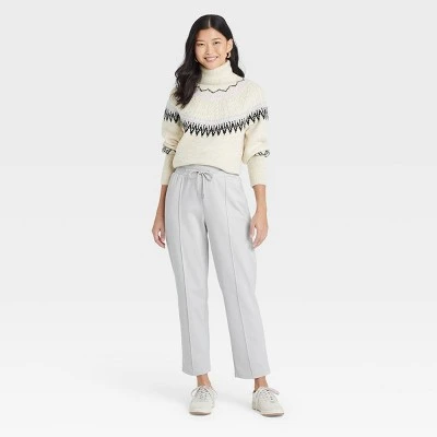 Move from office meetings to school functions in effortless style with these High-Rise Knit Drawstring Pull-On Pants from A New Day™. Showcasing an ankle length for a casual look, these straight-fit pants are crafted from soft fabric with a hint of spandex to keep you comfortable. Functional side pockets let you store on-the-go essentials, while the flattering high-rise elastic waistband allows for comfortable wear as you move through your day. Just tuck in a plain tee and layer with an open-front cardigan for a comfortable take on your day.