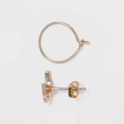 Bring on the sparkle with the Eight-Pair Cubic Zirconia Earring Set from A New Dayโข. This set includes several pairs of studs, from front-facing hoops to butterflies, as well as two pairs of hoop earrings with integrated loop backs, all in a mix of gold- and silver-tone finishes. Wear pairs separately for a simple, minimalist jewelry look, or easily coordinate two or more pairs together for multiple ear lobe piercings.