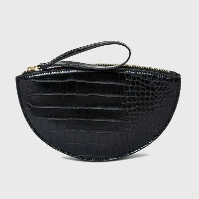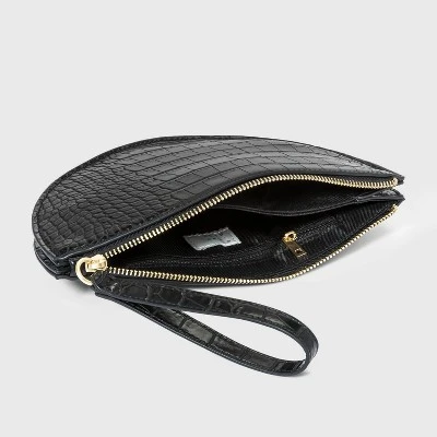 Take on any day in style with the Soft Clutch from A New Day™. Made from faux leather in a classic textured look, this pouch-style clutch bag is designed in a crescent shape for an elevated look and feel. The fashion clutch is secured with a zippered fastening at the top and opens to two main compartments and an interior zip pocket to keep your essentials organized. Plus, the wrist strap allows for easy carrying whether you’re using it for errands, a night out or just about any occasion.