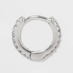 Bring sparkle and shine to your casual and dressed-up looks with these Cubic Zirconia Huggie Hoop Earrings from A New Day™. Featuring the classic huggie hoop design that hugs your earlobes perfectly, these silver-finished huggie hoop earrings are designed with studded zirconia crystal accents that add the perfect touch of shine to your looks. Elegant and timeless, these silver huggie earrings can be worn on their own for a sparkly flair or stacked with other stone-studded huggies for a more balanced ensemble.