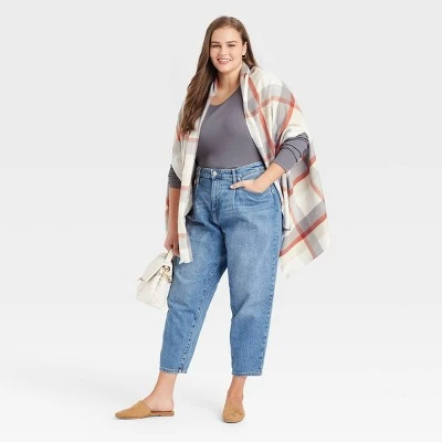 Layer up a simple jersey top and slim-fit jeans for an effortlessly cozy-chic look with the Cream Plaid Wrap Jacket from A New Dayโข. This cape-style wrap jacket made from lightweight fabric makes a fashionable and comfortable layering staple. It features a gray and orange plaid pattern to give it a timeless look, and a casual cut for relaxed appeal. The open-front style allows for easy layering and wear. Drape it loosely over the body or wrap around the neck and shoulders as a perfect transitional piece.