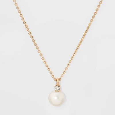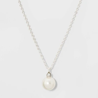 Update your overall look by adding chic style to your outfit with this Glass Necklace from A New Dayβ’. This simple short necklace features an appealing silver-tone chain with a glass pearl pendant, providing a glamorous look, and a lobster claw clasp makes for sturdy, secure wear. Pair this dainty pearl necklace with jeans and a tee or a simple shift dress with coordinating earrings for versatile style.