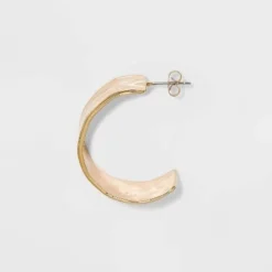 A striking alternative to a classic pair of hoop earrings, the Hammered Metal Gold Hoop Earrings from A New Day™ will make a great addition to your jewelry collection. The hoops of these earrings are made up of gold-tone metal that’s been hammered flat for a sleek look and added length. The wider width of the earrings creates a bit more dimension, and with a length of just an inch and a half, these earrings are a great size to draw attention without overwhelming your outfit or other accessories, making them an equally great pick to pair with a simple sweater and jeans as with a chic jumpsuit.