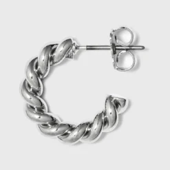 Add just the right amount of texture and shine to your everyday or wear-to-work styles with the Small Textured Hoop Earrings from A New Dayโข. Set on post-back earring hardware, these lightweight earrings are easy to wear and coordinate effortlessly with your existing jewelry collection. These open-hoop earrings boast a twisted rope-like design, where it looks like two strands are twisted around each other for an updated, eye-catching look you’ll love. Pair these silver-tone earrings with anything from leggings and a relaxed tee to a crisp button-down shirtdress for easy style you’ll come back to again and again.