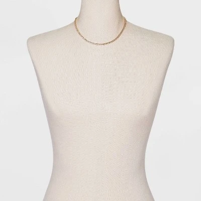 Add some sweet sparkle to your everyday looks with this Crystal Rhinestone Chain Necklace from A New Dayโข. Featuring a simple, chain-link style design in a shiny gold finish, this princess-length rhinestone necklace complements many different necklines and color palettes. The entire length of the chain is studded with sparkly crystal rhinestones, making for a glam look that instantly elevates a simple plain tee or a great go-to dress.