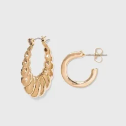 For shiny, striking style, you can’t go wrong with the Crystal Solid Hoop Earring Trio from A New Day™. This set of earrings comes with three pairs of hoop earrings that’ll make even your casual outfits look a little dressier. The set includes two pairs of open hoops that are easy to wear with post-back closures, and one pair of closed hoops that fit through the ear via a hinged earwire. All three pairs are made from sleek gold-tone metal for plenty of shine, while scalloped detailing puts a unique twist on classic hoops and crystal accents add extra sparkle to one pair of the open hoops. From V-neck tees to off-the-shoulder dresses to high-necked blouses or sweaters, these earrings look great with a wide variety of necklines, and they’re nickel-free for comfortable wear.