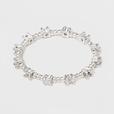 - Silver-finished ring with cubic zirconia accents