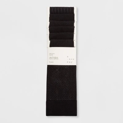 No matter how you’re styling your outfit for the day, you’ll love making a pair of Herringbone and Opaque Trouser Socks from A New Day™ the finishing touch. Knit from a super-soft nylon-blend fabric with added spandex, these black trouser socks provide breathable comfort for all-day wear. They feature banded cuffs for a snug fit, along with non-binding reinforced toes for long-lasting wear that further contributes to the comfortable design. Plus, you’ll love having six black pairs to choose from, with three opaque and three mesh, for a variety of styling options.