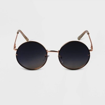 Step into the sun in chic style with these Oversized Metal Round Sunglasses from A New Dayβ’. The women’s oversized sunglasses will elevate your look with their gold metal frames and gray lenses. The stylish, round silhouette looks great with casual and dressier ensembles alike, while the UV protection in the frames and lenses help protect your eyes from the sunβs rays. Whether youβre exploring the city or enjoying lunch on the patio, these sunglasses will have you taking on the day in style.