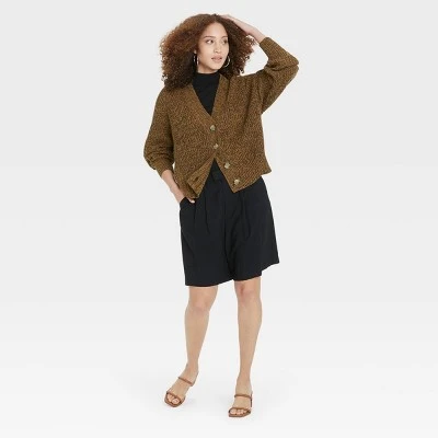 This Button-Front Cardigan from A New Day™ lends a cozy finish to your everyday look. Made of a comfy breathable fabric, this long-sleeve cardigan has a cozy knit design, and is finished with a V-neckline and ribbed edges for a classic look that can be dressed up or down with ease. The button-front design allows for effortless layering and easy wear, to add functional style. Layer over anything from dresses to tops for versatile cold-weather wear.