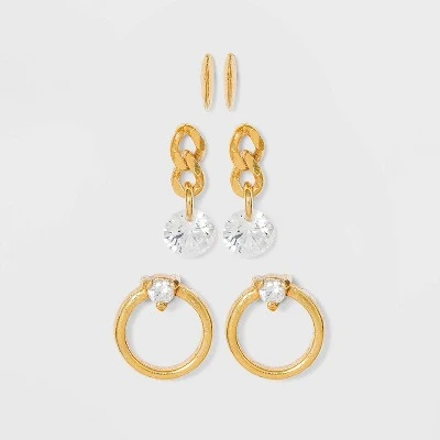 Update your accessory collection with this 3-Piece Sterling Silver Cubic Zirconia Earring Set from A New Dayโข. With a variety of earrings in different styles, this sterling silver earring set is crafted from sterling silver in a glossy gold finish to add sparkle and shine to your look. Nickel-free construction makes them compatible with a variety of skin types, and the post closure ensures comfortable wear. Simply pair these earrings with a variety of formal and casual looks for a subtle pop of style to your outfits.