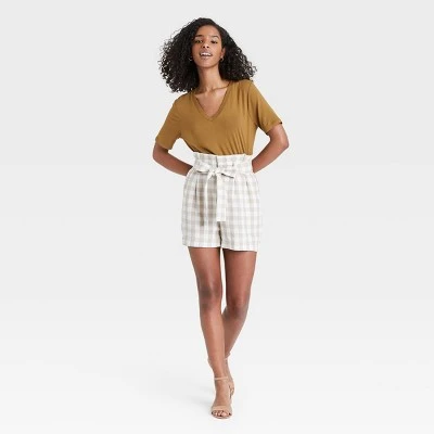 Expand your separates collection with the Short-Sleeve V-Neck T-Shirt from A New Day™. This women’s short-sleeve T-shirt is tailored in a relaxed fit, and it has a V-neckline and curved hem for feminine flair. The pullover tee is made from soft and drapey fabric with a hint of spandex for flexible wear that adjusts and moves with you. In a solid hue, this short-sleeve T-shirt makes a versatile addition to your closet, and it pairs effortlessly with any style of bottoms for a range of dressy and casual outfits. Tuck it into paperbag wide-leg pants for a feminine look or wear it untucked over leggings and sneakers for casual hangouts.