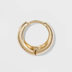 Add the perfect finishing touch to your ensemble with the Small Hoop Earrings from A New Day™. In a simple, sleek construction that’s comfortable for all-day wear, these hinged hoops are your new go-to pair of earrings. A single clear faux gem on the front of each hoop adds a little shimmer, while the yellow gold-tone finish adds warmth and pairs effortlessly with your existing jewelry items. Best of all, these dainty hoop earrings close with a hinge, meaning that they don’t require earring backs to stay secure, so you can go about your day with confidence.