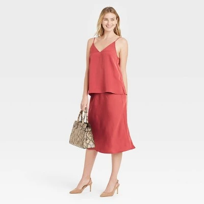 The Woven Cami from A New Day™ embraces the elegance of minimalism with its simple design. A V-neckline pairs with thin over-the-shoulder straps and a straight bodice, making for a basic style that emphasizes the pretty drape and flow of the piece. Small side slits offer a bit of movement that’s perfect to wear untucked with skinny jeans and printed ballet flats, or you can tuck it into the matching midi skirt for a co-ord look. Adjustable straps round out the piece so you can find the right fit.