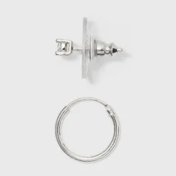 Keep that jewelry box stocked with the Double Pearl and Cubic Zirconia Sterling Silver Hoop Earring Set from A New Dayโข. This set includes five pairs of minimalist silver earrings in different form factors, with studs set on post hardware with bullet-clutch backs for comfortable, secure wear and sterling silver endless hoop earrings with tidy integrated closures. Included are a pair of silver arched bar earrings, geometric studs with CZ accents, CZ studs in silver prong settings, dainty faux pearl drop earrings and a set of silver endless hoops for versatile options you’ll love. Each pair can be worn separately for a minimalist vibe that’s easy to dress up or down, and their coordinating looks mean they’re also easy to style together when you want a little more impact from your accessories.