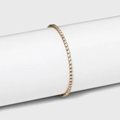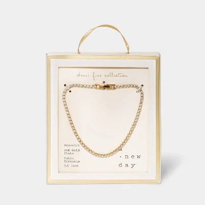 Give your favorite outfits a shiny new accessory with the 14K Gold Plated Cubic Zirconia Tennis Bracelet from A New Dayโข. This charming bracelet is made of 14K gold-plated, nickel-free metal and features cubic zirconia stones that add the perfect amount of shine and sparkle to help elevate your everyday outfits with a little added glam.