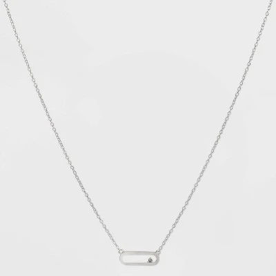 Simply accessorize your outfits with this Sterling Silver Cubic Zirconia Open Link Necklace from A New Day™. Designed with a simple linked chain for a sleek look, this sterling silver necklace is accented with a rectangle open bar with curved sides and a cubic zirconia stone for a glam look. Nickel-free, this princess-length necklace makes a great layering piece with both your casual or formal outfits.