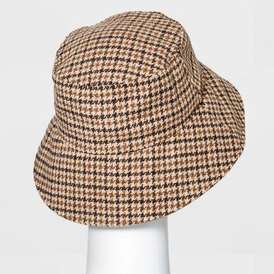 Add the perfect finishing touch to your fall and winter casual looks with the Plaid Felt Bucket Hat from A New Day™. Made of felt fabric, this fuzzy hat is warm and comfortable, and its pull-on style makes for easy wear. Decorated with a seamless plaid pattern in beige and brown for elegant style, this hat for women sports a bucket brim to keep you shaded in chic style.