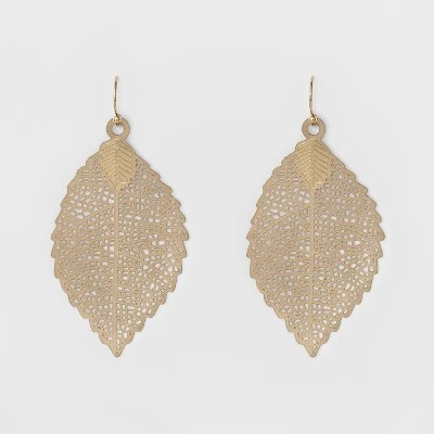 - Gold leaf drop earrings feature beautiful, intricate detail