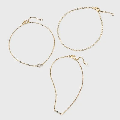 Accessorizing your warm-weather ensembles is easy with the Crystal and Chain Anklet Trio Set from A New Dayโข. This set of anklets includes three anklets, each made from gold-tone metal for just the right touch of shine. One anklet has a simple chain-link look, while the other two have delicate cable chains accented with a circle of crystals on one and a bar of crystals on the other for a little sparkle. Each anklet makes a simple yet pretty accessory on its own, or you can create a more striking look by wearing all three together. In addition to their lovely look, you’ll appreciate the nickel-free metal that makes them comfy even for sensitive skin, as well as the length of extender chain that lets you adjust the fit to best suit you.