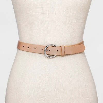 Fasten your look together for any occasion with this Round Buckle Belt from A New Day™. In a solid hue, this women’s belt makes a versatile choice in your accessories collection. It features a silver round buckle closure for a polished look, and the multiple hole adjustments offer a customized fit to make sure your pants or skirts stay securely in place. Whether paired with a blouse and jeans combo or wrapped around a dress, this round buckle belt makes a versatile addition to your closet.