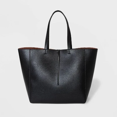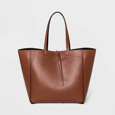 Get two chic and convenient bags in one with the Reversible Tie Closure Tote Handbag from A New Day™. This large tote handbag is designed with a simple and classic double-handle shape, so it’s comfortable and easy to fill with your essentials and sling over your shoulder. The structured tote bag fully reverses so you can choose which color and finish serves as the exterior, giving you twice as many options for matching to a variety of looks. Plus, a convenient tie closure at the top cinches the bag shut to help keep your items from spilling out.