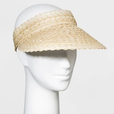 Top off your summer style with this Straw Visor Hat from A New Day™. This visor-style hat makes a go-to accessory for sunny days. It features a wide brim for plenty of protection, and a natural woven construction for breezy texture and versatile style. The lightweight hat is designed with a back elastic for a secure pull-on fit that allows for ease of wear. You can coordinate this versatile hat with a wide range of outfits, from summer dresses to laid-back ensembles when heading outdoors on warm-weather days.