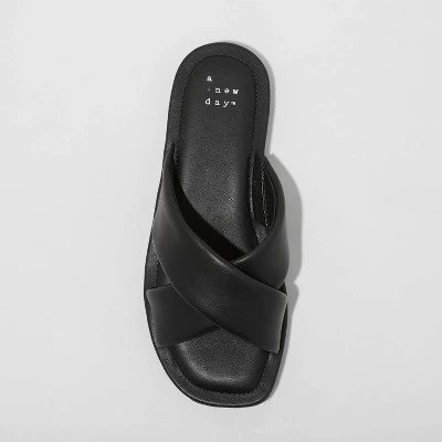 Make summer styling easy with these Daisy Crossband Slide Sandals from A New Day™. These slide sandals makes a great pick for a range of occasions. They feature a breezy open-toe design with crisscross overlapping straps over the foot for a better fit. The flat heel along with a slip-on style make them super comfortable and easy to wear, while the textured outsole ensures a better grip while walking. Pair with skinny jeans and a basic tee or a breezy sundresses to flaunt your easygoing warm-weather style.