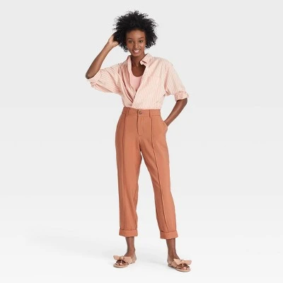 These High-Rise Slim Straight Leg Pintuck Ankle Pants from A New Dayโข take you from office meetings to after-work hangs in effortless comfort and style. Designed with a high-rise waistline for a flattering fit, these ankle-length pintuck pants are crafted from soft fabric with lightweight lining to keep you in cool comfort as you move through the day. Plus, the side slit pockets let you store your small on-the-go essentials. Keep things on the casual side with a tank or tee, or go with a blouse for a dressier twist.